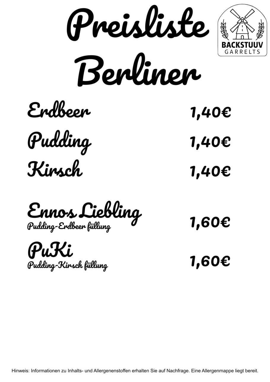 Preisliste Berliner